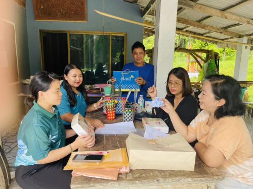 นางสาววาสนา เกตุวารี พัฒนาการอำเภอท่าแซะ มอบหมายให้ว่าที่ ร.ต.หญิงรัตนา เรือนไทย พัฒนากรผู้ประสานงานตำบลท่าข้าม ร่วมจดตั้งกลุ่มวิสาหกิจชุมพรแพรไหมศิลป์เขาสวน หมู่ที่ 14 ตำบลท่าข้าม อำเภอท่าแซะ จังหวัดชุมพร