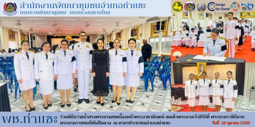 นางสาววาสนา เกตุวารี พัฒนาการอำเภอท่าแซะ พร้อมด้วยข้าราชการสังกัดสำนักงานพัฒนาชุมชนอำเภอท่าแซะ ร่วมพิธีถวายน้ำสรงพระบรมศพเบื้องหน้าพระฉายาลักษณ์ สมเด็จพระนางเจ้าสิริกิติ์ พระบรมราชินีนาถ พระบรมราชชนนีพันปีหลวง เพื่อให้ข้าราชการและพสกนิกรชาวอำเภอท่าแซะ ได้ร่วมแสดงความอาลัยและน้อมสำนึกในพระมหากรุณาธิคุณอย่างหาที่สุดมิได้ โดยมี นายพิศิษฐ์ ฤทธิพิชัยสงคราม นายอำเภอท่าแซะ เป็นประธานในพิธีถวายน้ำสรงพระบรมศพเบื้องหน้าพระฉายาลักษณ์ สมเด็จพระนางเจ้าสิริกิติ์ พระบรมราชินีนาถ พระบรมราชชนนีพันปีหลวง พร้อมด้วยหัวหน้าส่วนราชการ ข้าราชการ พนักงานรัฐวิสาหกิจ ภาคเอกชน และประชาชนชาวอำเภอท่าแซะทุกหมู่เหล่า เข้าร่วมพิธีโดยพร้อมเพรียง ณ ศาลาประชาคมอำเภอท่าแซะ จังหวัดชุมพร