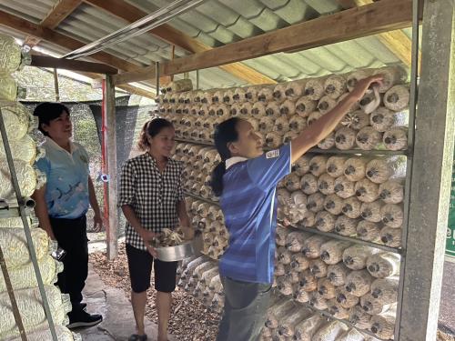 พช. ท่าแซะ ติดตามการดำเนินงานกลุ่มเพาะเห็ดฟาง (นางวันเพ็ญ คงจร) หมู่ที่ 3 ตำบลท่าข้าม อำเภอท่าแซะ จังหวัดชุมพร