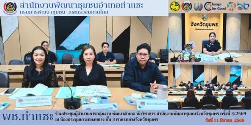 พช.ท่าแซะ เข้าร่วมประชุมผู้อำนวยการกลุ่มงาน พัฒนาการอำเภอ นักวิชาการสำนักงานพัฒนาชุมชนจังหวัดชุมพร ครั้งที่ 3/2569